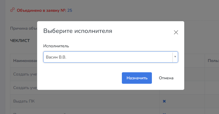- Чек-лист - чек-лист закрепленный за сервисом, позволяет внутри заявки отмечать несколько пунктов, которые при отметке, хранят время и сотрудника отметившего пункт чек-листа.