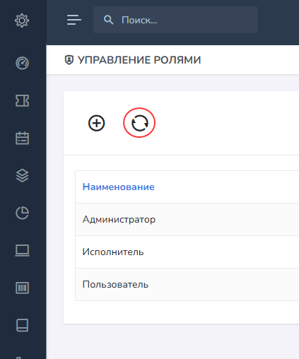 - После каждого обновления требуется перезагрузка ролей, так как новый функционал поставляется по умолчанию с отключенными правами доступа. Для обновления ролей необходимо в меню Настройки - Управление ролями нажать на кнопку выделенную на рисунке:
