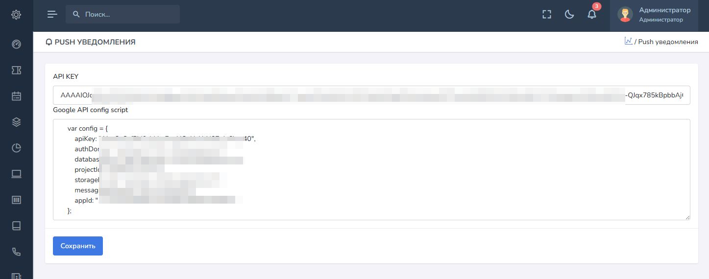 В системе указаны параметры аккаунта Google Developer Console, которые позволяют из коробки пользоваться Push уведомлениями в браузере, но вы всегда сможете указать настройки из своего Developer аккаунта.