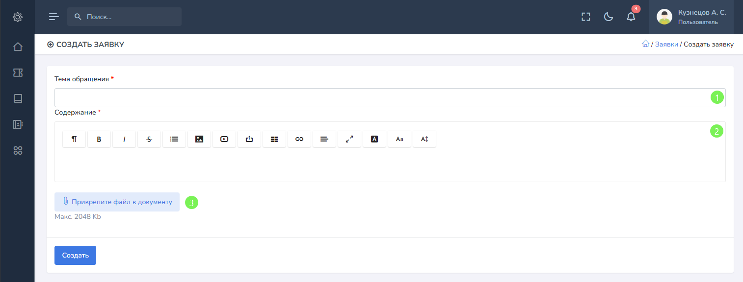 - Тема обращения - отображаемое название заявки. Краткая суть описываемой заявки.