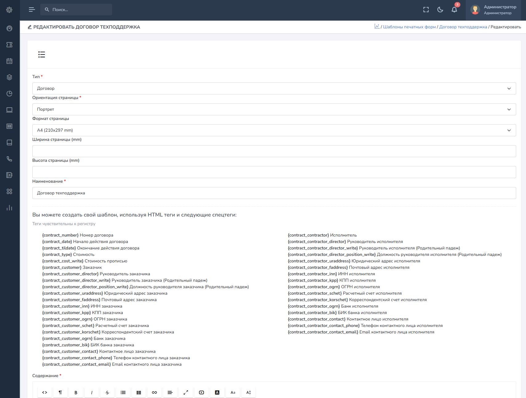 Форма создания / редактирования договора