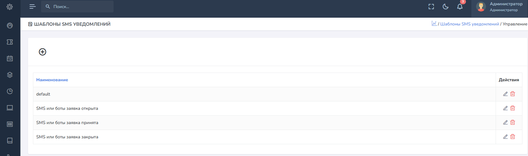 Шаблоны SMS уведомлений – этот справочник аналогичен справочнику «Шаблоны E-mail уведомлений», но используется для уведомлений через канал SMS и для уведомлений отправляемых через ботов.