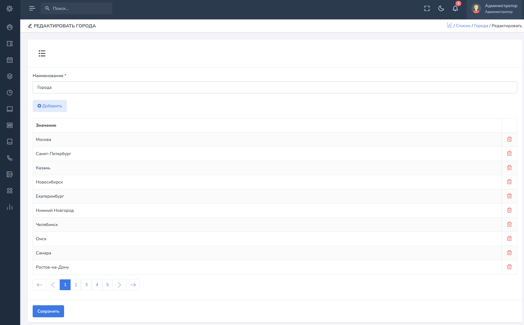 В справочниках Наборы полей и Компании, вы можете создать дополнительное поля типа Select, которое отображает значения из выбранного списка. В справочнике Списки, вы можете создать свои списки и наполнить их содержимым.