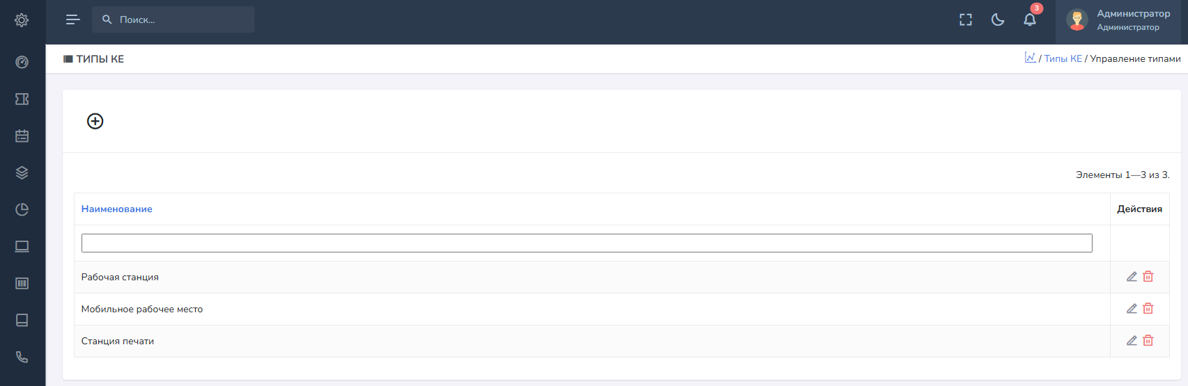 Управление типами КЕ