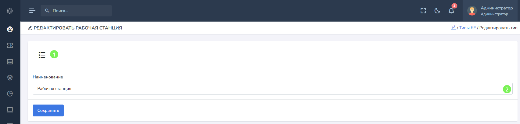 Создание / редактирование типа КЕ