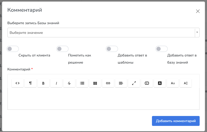 Модальное окно добавления комментария