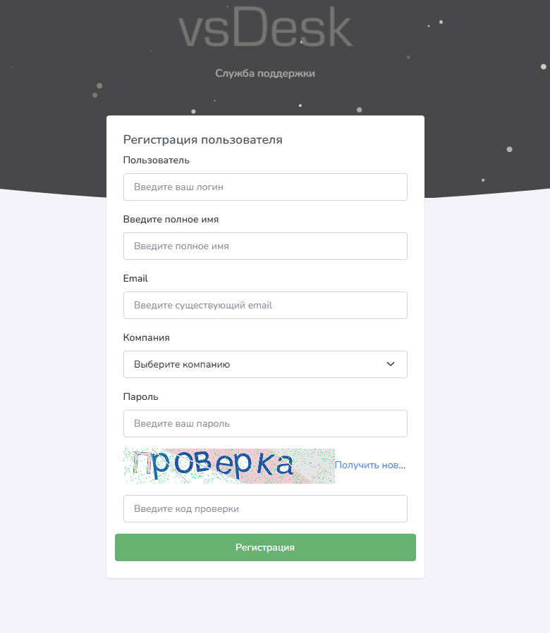 2) Регистрация, если у вас нет аккаунта - опционально позволяет произвести регистрацию аккаунта пользователя в системе. Может быть доступен выбор компании к которой пользователь хочет относится при регистрации. Система проверяет логины на уникальность и не позволяет использовать кириллические символы в логине. Для защиты от спама и роботов используется механизм captcha осложненный кириллическими символами.