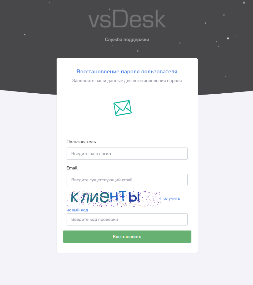 4) Войти в систему - обычная форма ввода логина и пароля для входа в систему vsDesk.